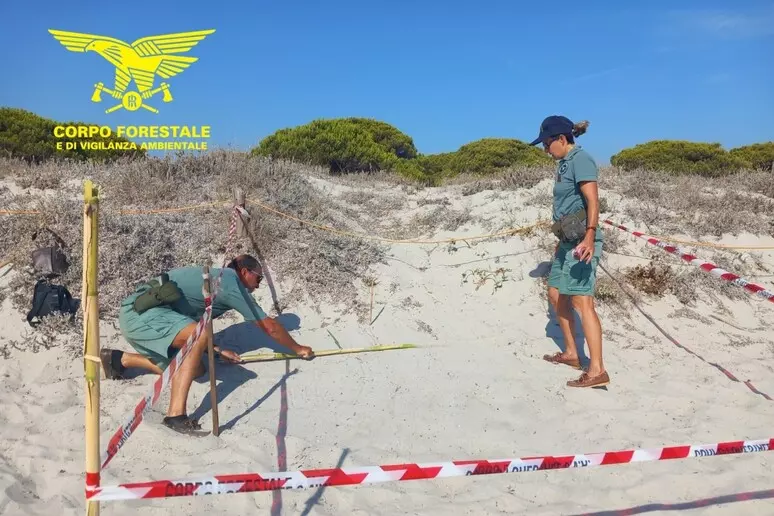 Su segnalazione di un cittadino, che nella serata di sabato ha osservato e aiutato una piccola tartaruga a raggiungere il mare, la pattuglia forestale della base navale di Siniscola è intervenuta nella spiaggia di Salamaghe a Budoni per individuare e mettere in sicurezza un nido di Caretta Caretta.