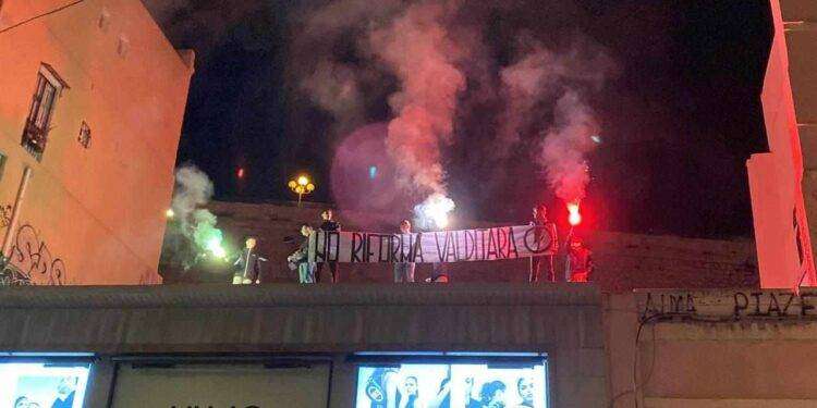 “Con questo Blitz nelle vie del centro – comincia la nota del movimento – abbiamo voluto far passare un messaggio chiaro e tondo, prendendo posizione contro la riforma degli istituti tecnici e professionali del ministro Valditara, atteso nella nostra città questo lunedì”. “Una riforma voluta dal ministero – continua il movimento – che rappresenta l’ennesimo passo in avanti verso la realizzazione di una scuola sempre più precaria e privatizzata, dove gli studenti, attraverso l’aumento delle ore di alternanza scuola-lavoro, vengono lasciati in pasto a grandi aziende e multinazionali. L’ennesimo grande sogno liberale di creare una massa di giovani privi di spirito critico, pronti ad essere sfruttati dal capitale”.