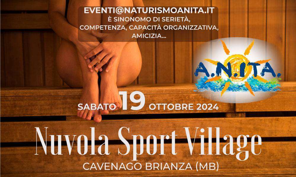 Serata Wellness naturista, l’evento promosso dall’ Associazione Naturista Italiana ( A.N.ITA.) e si svolgerà il 19 ottobre presso il Centro Benessere Nuvola Sport Village di Cavenago.