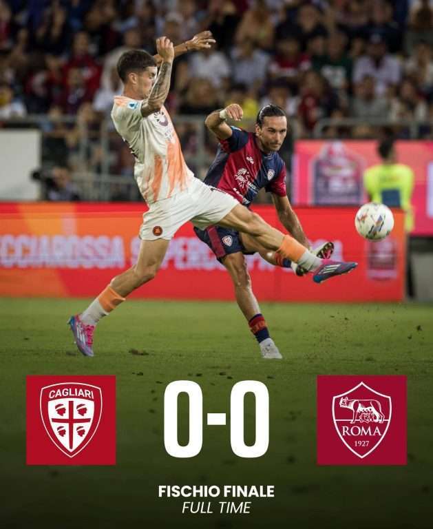 Sesto pareggio su otto gare in questa prima giornata di Serie A. Nel prossimo turno la Roma ospiterà l’Empoli, mentre il Cagliari giocherà nuovamente tra le mura amiche contro il Como.