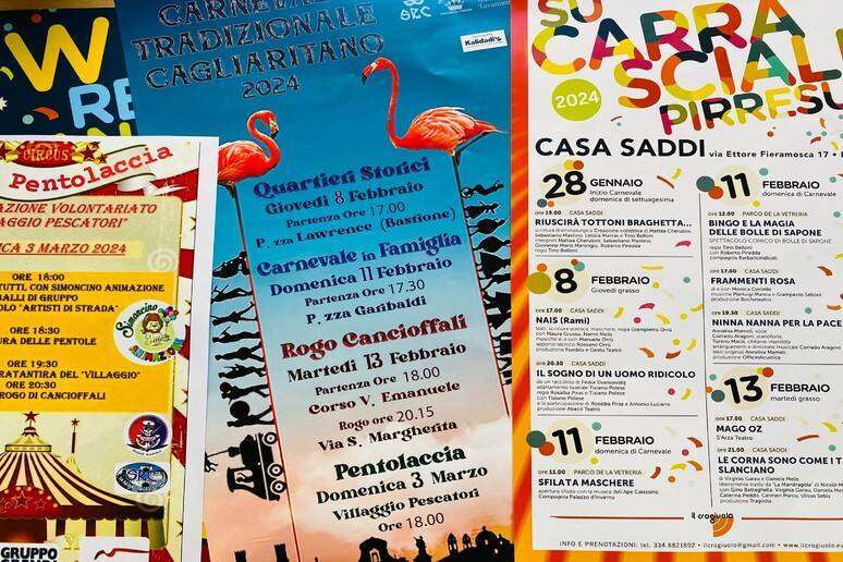Ci sarà invece la Pentolaccia, domenica 3 marzo al Villaggio dei Pescatori: dalle 18 sono previsti giochi, animazione, spettacoli con artisti di strada e, in forma ridotta, il rogo di Canciofali. E c’è anche “Su Carrasciuali pirresu”. Iniziati il 28 gennaio, i festeggiamenti a Pirri continuano oggi a Casa Saddi. Con un ticket di 1 euro alle 17 si potrà assistere allo spettacolo teatrale “Nais (Rami) e alle 20.30 a “Il sogno di un uomo ridicolo”, tratto da un racconto di Dostoevkij”.