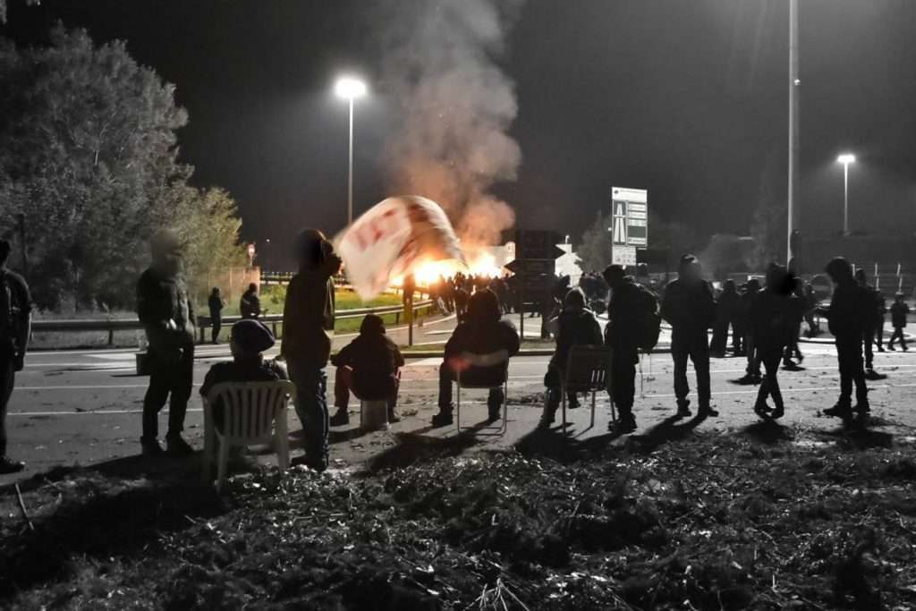 Intorno alle 2 di questa notte, infatti, una lunga colonna di mezzi delle forze dell’ordine (a scorta di camion sui quali era stato caricato il materiale atto a recintare tutta l’area) si è attestata allo svincolo autostradale di Susa di fronte al presidio di San Giuliano. Ad attenderli il Movimento No Tav che, già a partire dalla serata, si era radunato sul luogo per far fronte a questo atto di assurda violenza per difendere il terreno sul quale il presidio è stato costruito. Terreno che, seguendo ciò che dovrebbe essere previsto dalla legge, sarebbe dovuto rimanere accessibile e in mano ai 1054 proprietari che lo hanno acquistato nel 2012, fino alle fine delle procedure di esproprio (che ricordiamo dovrebbero iniziare da mercoledì 9 ottobre e andare avanti per almeno un paio di settimane).
