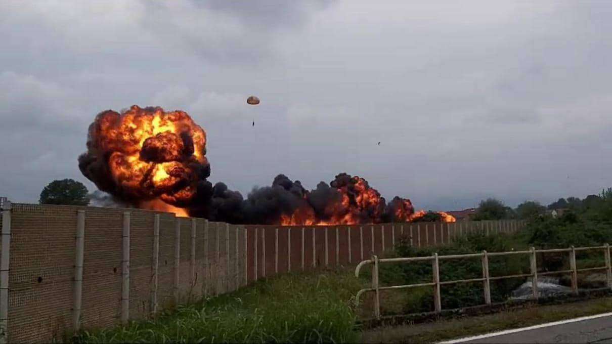 Secondo le prime notizie la ‘Freccia’ è caduta in fase di decollo e si è schiantata al fondo della pista nel territorio che ricade nel Comune di San Francesco al Campo. Il velivolo ha poi preso fuoco. Il pilota si è lanciato dalla cabina a pochi istanti dal contatto con il suolo