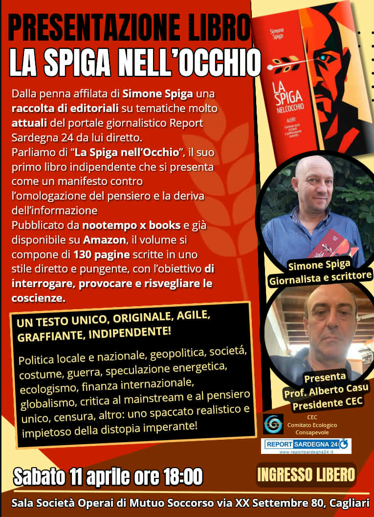 Penna affilata e politicamente scorretto, questo è di Simone Spiga, autore del libro “La Spiga nell’Occhio”, una raccolta di editoriali su tematiche molto attuali del portale giornalistico Report Sardegna 24, da lui diretto.