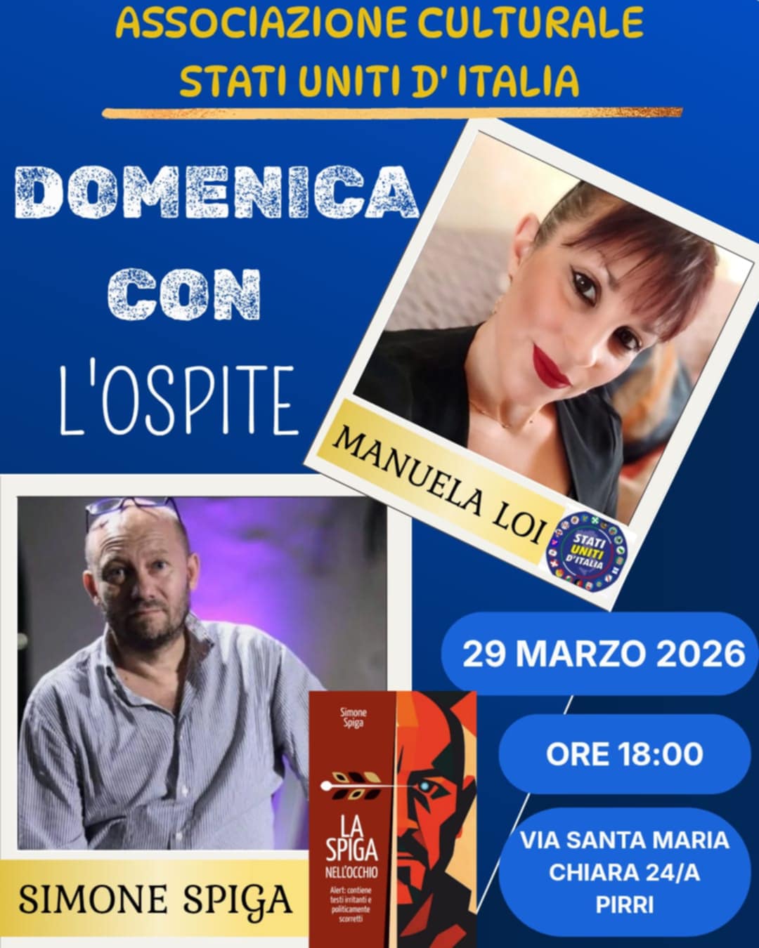 Prosegue il tour di presentazioni pubbliche in Sardegna e dopo Serramanna è la volta di Pirri, dove verrà presentato domenica 29 marzo a partire dalle ore 18 in via Santa Maria Chiara 24/a presso la sede dell’Associazione Culturale Stati Uniti D’Italia.