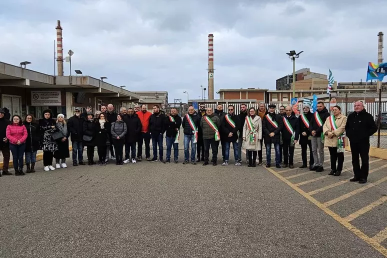Presidio improvvisato dei sindaci del Sulcis Iglesiente davanti allo stabilimento della Portovesme srl dopo l’annuncio della Glencore di anticipare la chiusura della linea zinco a lunedì 23 dicembre.
