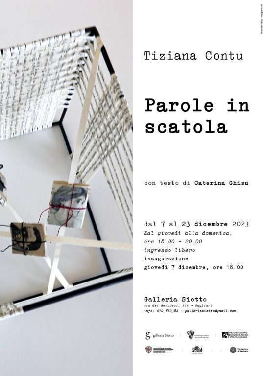 Sino al 23 dicembre nella Galleria Siotto di Cagliari, lo spazio espositivo della Fondazione Siotto in via Dei Genovesi 114, è possibile visitare la mostra di Tiziana Contu “Parole in scatola”.