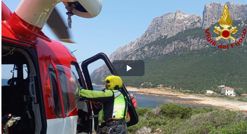 Intervento di soccorso portato a termine con successo sull’isola di Tavolara (SS) dall’equipaggio di Drago VF143, nome in codice del velivolo in forza al reparto volo di Alghero dei Vigili del fuoco.