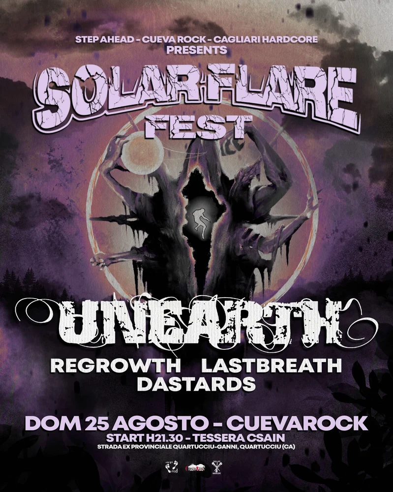 Cuevarock Live & Cagliari Hardcore con la collaborazione di Step Ahead presentano il Solar Flare Fest in programma il 25 agosto alla CuevaRock Live Club di Quartucciu.