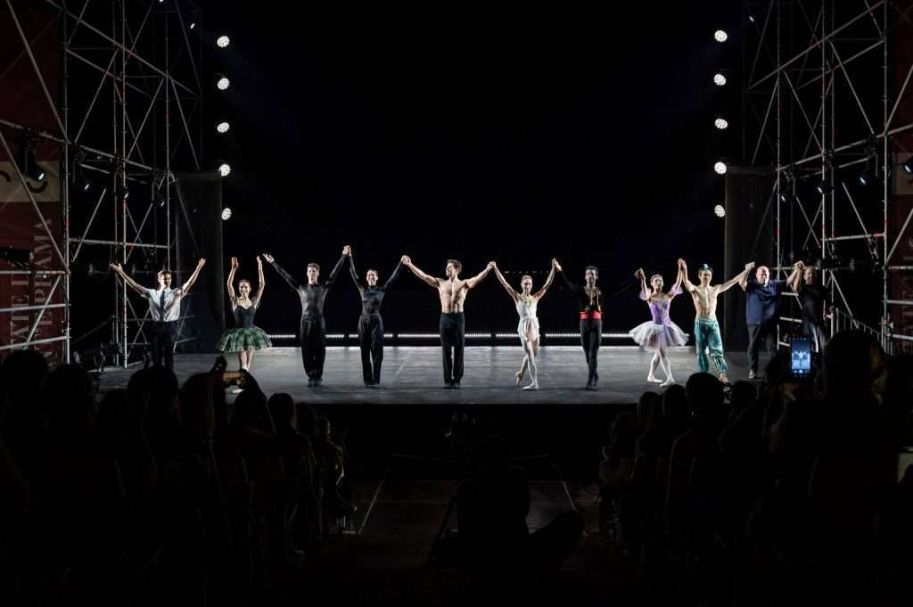 L’intera platea del rinnovato Teatro all’aperto di Tharros, sold out già da diverse settimane per uno degli appuntamenti più attesi del cartellone dell’Estate di Mont’e Prama, ha salutato con una lunga standing ovation la performance di Roberto Bolle, accompagnato sul palcoscenico da António Casalinho, Travis Clausen-Knight, Margarita Fernandes, Osiel Gouneo, Daichi Ikarashi, Tatiana Melnik, Mariko Sasaki e Casia Vengoechea. Oltre ottanta minuti di passi a due e assoli che hanno strappato applausi a scena aperta.
