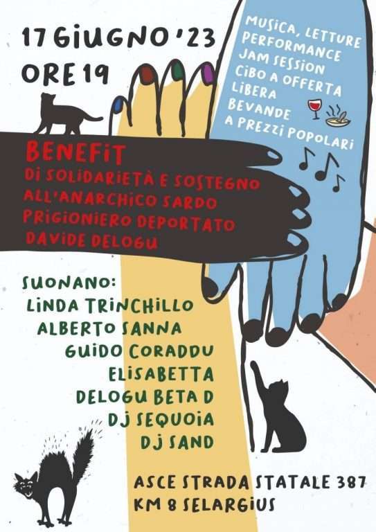 Sabato 17 giugno presso la sede dell’Asce si svolgerà un concerto di solidarietà e sostegno all’anarchico sardo prigioniero deportato Davide Delogu.
