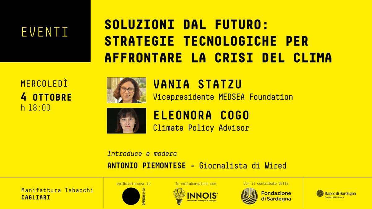 Soluzioni del futuro: Strategie tecnologiche per affrontare la crisi del clima è il titolo del talk in programma mercoledì 4 ottobre, alle ore 18:00, presso l’Ex Manifattura Tabacchi, in viale Regina Margherita 33 a Cagliari (corte 2, primo piano).L’evento è realizzato da Opificio Innova – Partner 24Ore.