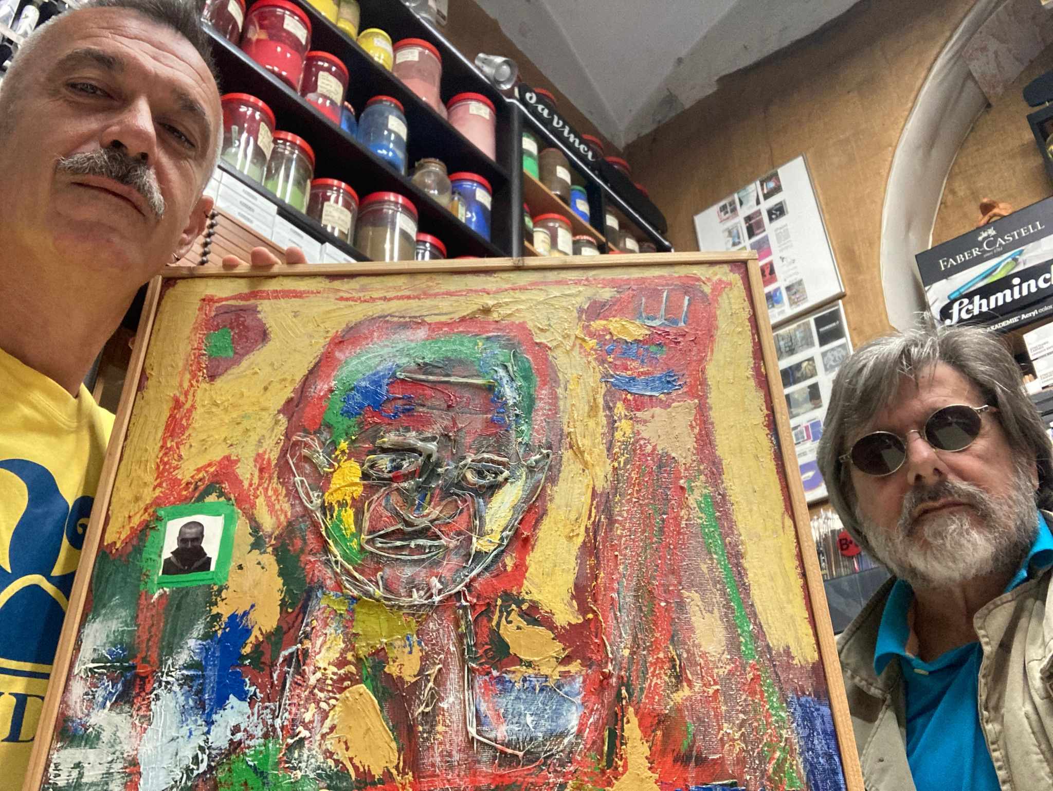 Quando avveniva questo? Nel 2007, abbandonai il quadro da qualche parte, in genere li lasciavo nelle mura greche di Piazza Bellini, Milanese lo prelevò custodendolo fino a ora nella sua collezione, non so se me lo restituirà come ha fatto il collezionista Gennaro Oliviero pensando d’avere poco tempo da vivere e sapendo di non avere eredi, Antonio Milanese ha eredi ed ha una collezione che spazia tra Maestri dell’arte contemporanea internazionale e locale (ha pezzi anche di Marco Rallo e del compianto Gennaro Cilento acquisiti tra fine novecento e primo decennio del millennio, quando come me erano giovani artisti), non avesse conservato questa memoria, non mi sarei ricordato d’essere stato Banksy prima di Banksy e d’essere andato oltre Duchamp con pochissimi che lo notavano.
