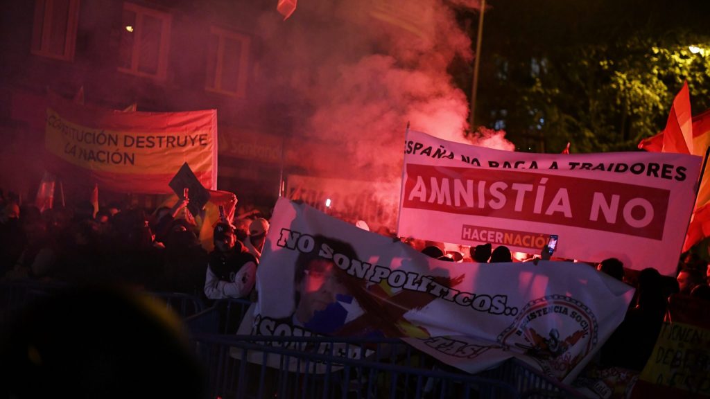 Massicce proteste e violenti scontri con la polizia a Madrid contro la decisione del primo ministro Pedro Sanchez di concedere un’amnistia ai separatisti catalani coinvolti nei fatti del 2017 in cambio del loro sostegno in Parlamento.