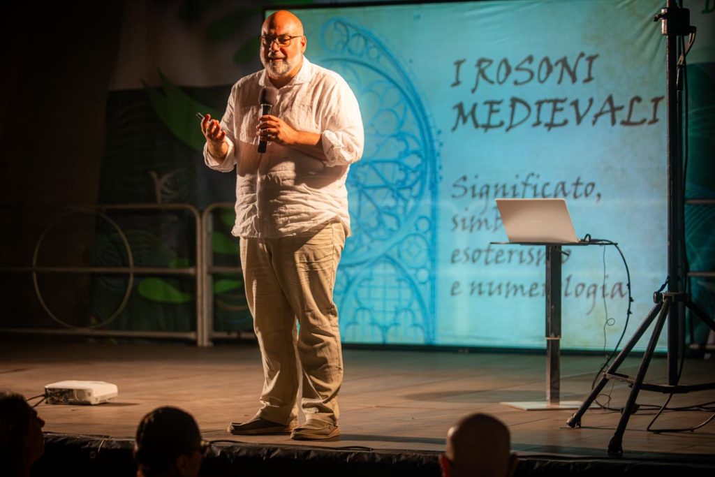 La luce, simbolo della Rivelazione Divina e della vita, penetra nei luoghi sacri attraverso piccoli spiragli, esortando alla contemplazione. I rosoni rappresentano l’esoterismo delle cose, il loro significato nascosto e la loro unicità che va oltre la comprensione superficiale. Con il richiamo al mandala indiano, simbolo di meditazione e cerchio che racchiude il loto, i rosoni condividono la natura di labirinti, percorsi complessi in continua evoluzione tra periferia e centro, in sintonia con i cicli eterni del cosmo.