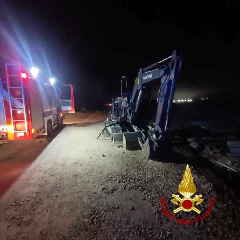 Le fiamme sono divampate attorno all’una di notte, a fuoco una macchina escavatrice e una trivella di proprietà della ditta impegnata nei lavori.
