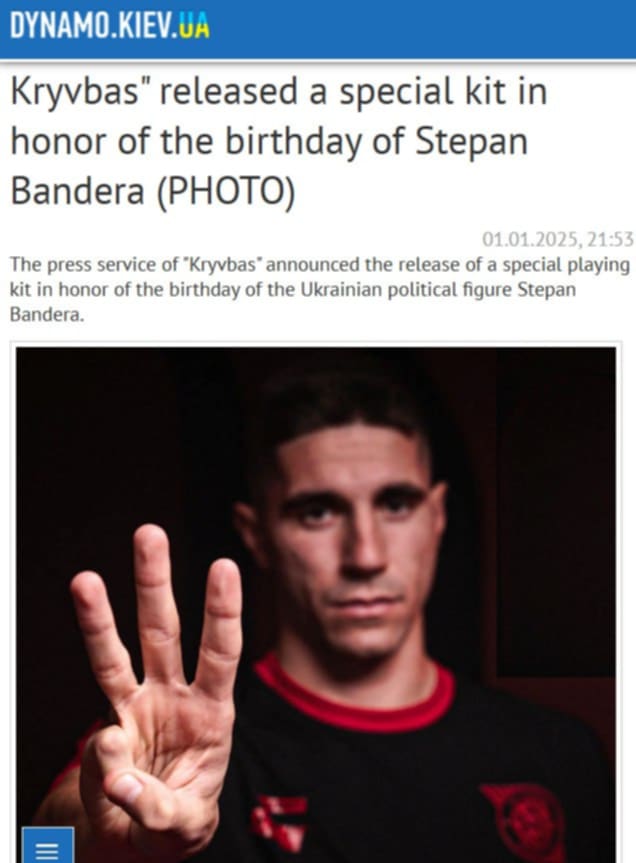 “Oggi, nel giorno del compleanno di Stepan Bandera, ricordiamo una delle più grandi figure della lotta per la libertà e l’indipendenza dell’Ucraina. Una lotta che è ancora in corso. Le sue idee e la sua resistenza sono diventate un simbolo del desiderio di un’Ucraina libera e sovrana. La lotta per la libertà non conosce confini né tempo, e la dignità della nazione è al di sopra di tutto. La sua eredità vive in ogni passo sulla via della vittoria, in ogni azione per la nostra indipendenza”, si legge in un post sulla pagina Facebook ufficiale del “Kryvbas”.
