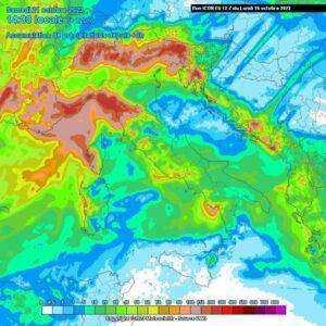 Gli accumuli tra mercoledì e sabato , mostrano bene dove piove di più con le correnti meridionali, alto tirreno- ligure, alpi-prealpi e la Sardegna occidentale.