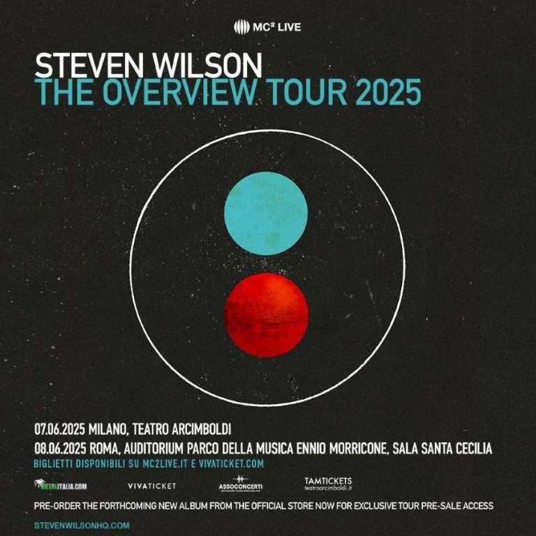 Steven Wilson dichiara: “Sono entusiasta di poter annunciare un nuovo tour per il 2025, il mio primo in 7 anni. The Overview Tour sarà un’esperienza audiovisiva basata su una prossima nuova uscita con lo stesso nome: un album a tema spaziale che contiene solo due pezzi molto lunghi. Suonerò anche la musica di The Harmony Codex per la prima volta e le canzoni di tutti i miei dischi precedenti. Sono incredibilmente felice di esibirmi di nuovo con la mia band solista, abbiamo molto tempo perduto da recuperare. Non vedo l’ora di vedervi in quella che sarà una serata epica!”