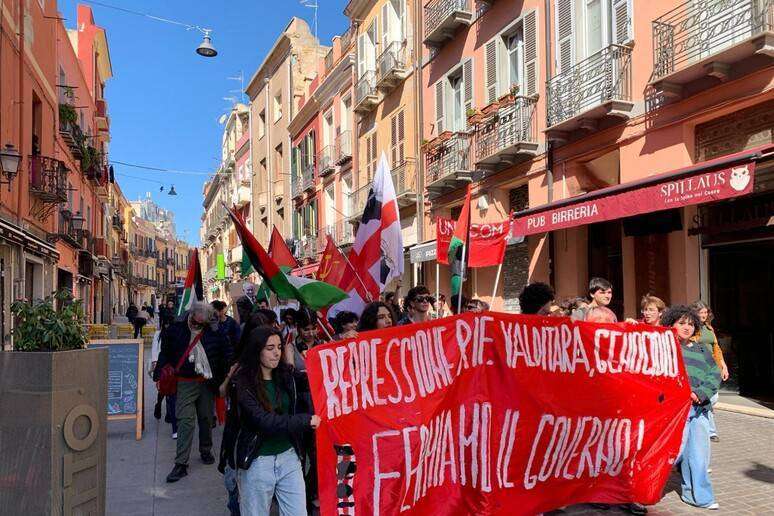 Il corteo a Cagliari è partito dalla piazzetta di fronte al liceo classico Siotto. Dietro lo striscione con la scritta “Fermiamo il Governo” decine di ragazzi con bandiere, anche della Palestina. “Dopo Pisa, Firenze, Catania, Bologna il copione è chiaro: il governo risponde con i manganelli a chiunque critichi la complicità con il massacro dei palestinesi, la riforma dell’istruzione, la sua politica in generale. Assurdo parlare di ordine pubblico per giustificare il pestaggio di ragazzi di 16 anni”, ha dichiarato Elisabetta del Fgc.