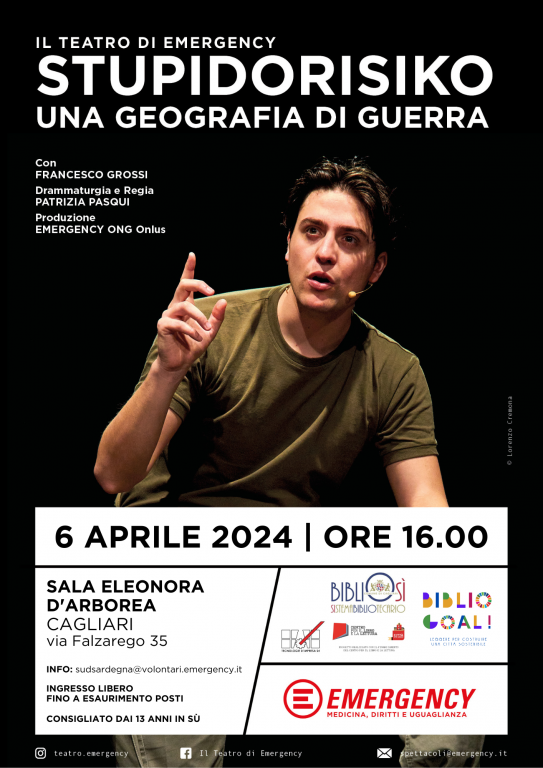 Stupidorisiko – Una geografia di guerra, prodotto da Emergency Ong Onlus sarà in scena a Cagliari il 6 aprile alle ore 16:00 presso Sala Eleonora d’Arborea al Polo Bibliotecario di Via Falzarego 35.