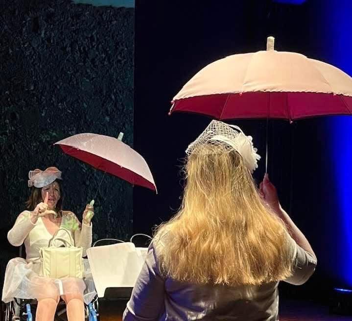 Una donna scissa in tre. L’ostinazione alla vita, l’umano attaccamento all’esistenza anche in condizioni estreme. Lo spettacolo, liberamente ispirato a Happy Days di Samuel Beckett. Una donna, bloccata in una condizione di estrema solitudine, fugge dal suo presente raccontandosi la gioia nel suo chiacchiericcio, imprigionata in una vita di incomunicabilità che richiama il teatro dell’assurdo. Le tre interpreti danno voce, gesti e corpo all’anima della stessa donna scissa in tre. Sullo sfondo il quadro del pittore Silvano Girardello, che ben rappresenta la desertificazione dei sentimenti e la distanza all’interno della coppia uomo-donna, che è al centro dello spettacolo. Lo spettacolo è recitato in italiano e in Lingua dei segni italiana per le persone ipo-udenti.