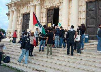 Manifestazione pro Palestina davanti al Palazzo delle Scienze a Cagliari per contestare le lezioni del docente della Technion Institute di ...