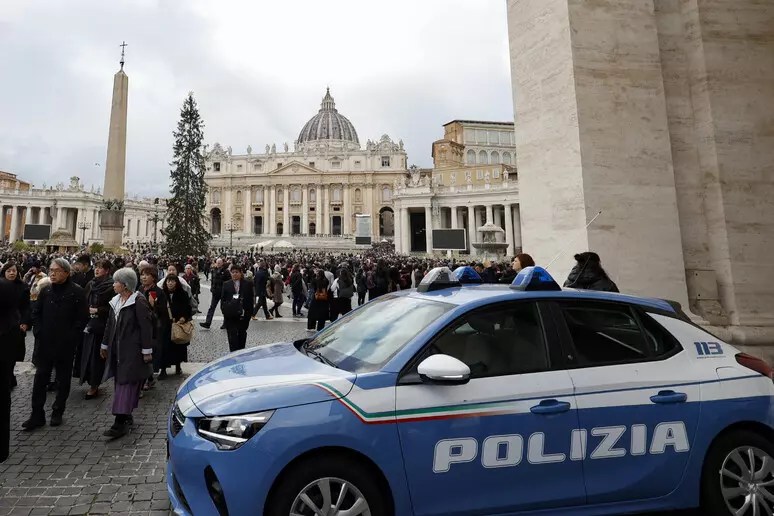 Momento di trambusto durante l’arrivo di papa Francesco in Piazza di Spagna per l’omaggio alla statua dell’Immacolata.
