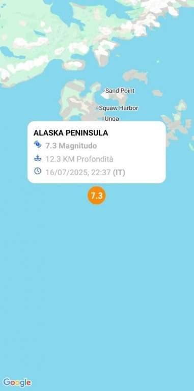 Tags: AlaskaAllerta tsunamiTerremoto in AlaskaTerremoto in Alaska di magnitudo 7.2 con epicentro in mare