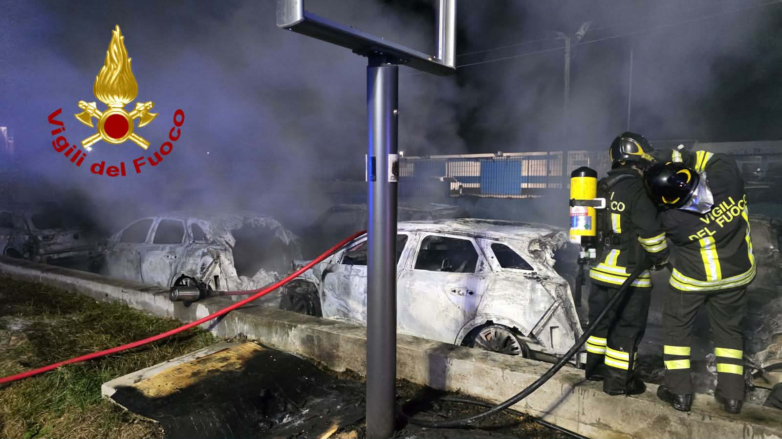 Nella notte ad Alghero, nei pressi dell’aeroporto, si è sviluppato un incendio che ha coinvolto numerose autovetture, per un totale di 14 mezzi interessati dalle fiamme.