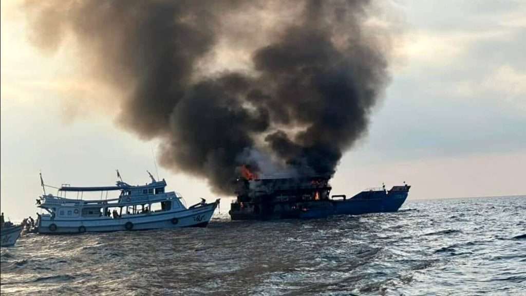 Un traghetto con più di 100 persone a bordo ha preso fuoco questa mattina al largo della costa della Thailandia meridionale, costringendo i passeggeri a gettarsi in mare per sfuggire alle fiamme.