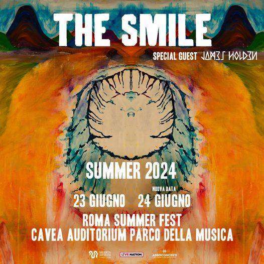 Nuova data in Italia per gli Smile. Il gruppo, formato da Thom Yorke e Jonny Greenwood dei Radiohead, insieme a Tom Skinner, oltre alla data già annunciata di domenica 23 giugno 2024, sarà protagonista di un secondo appuntamento nella Capitale lunedì 24 giugno 2024, sempre alla Cavea Auditorium Parco della Musica Ennio Morricone per il Roma Summer Fest, con James Holden come special guest.
