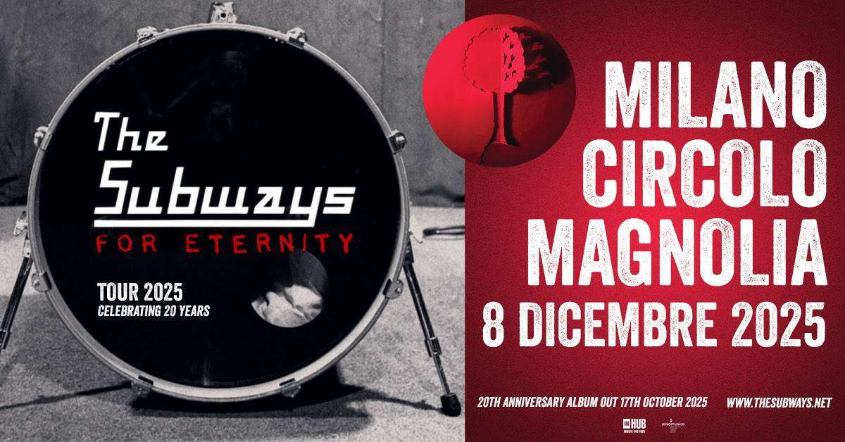 The Subways, fenomenale trio inglese, annuncia il tour europeo, che comprende un’unica data italiana al Circolo Magnolia il prossimo 8 dicembre, per celebrare il ventesimo anniversario dal loro debutto e “When I’m With You”, una selezione di singoli simbolo della loro carriera e due nuovi pezzi.