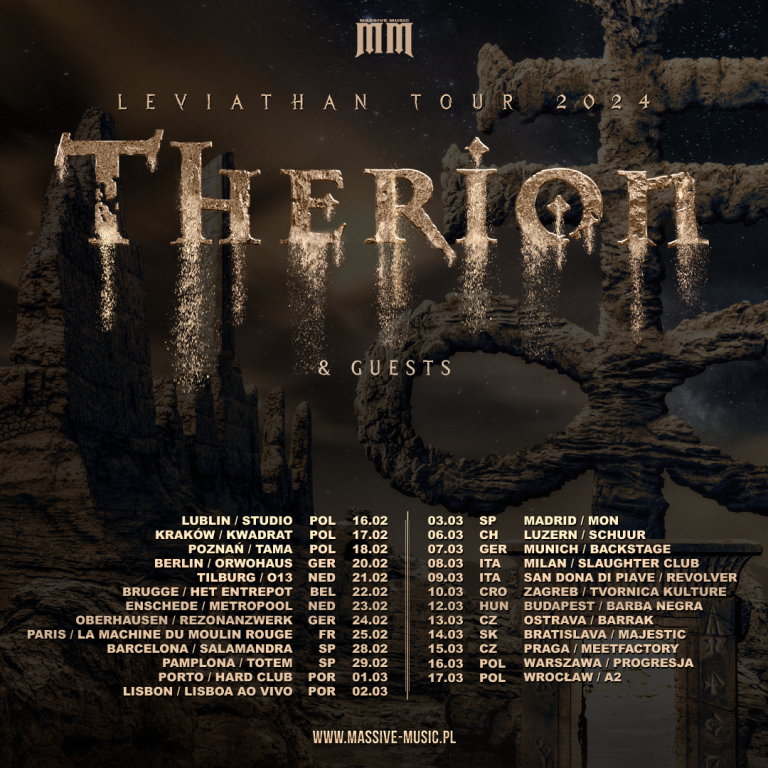 I pionieri svedesi del symphonic metal Therion sono orgogliosi di annunciare che si imbarcheranno in un ampio tour europeo, denominato Leviathan Tour, che si protrarrà da febbraio a marzo 2024. Oltre ad alcuni classici, i fan potranno aspettarsi canzoni tratte dall’acclamato ultimo album Leviathan II. Due le date previste per l’Italia: