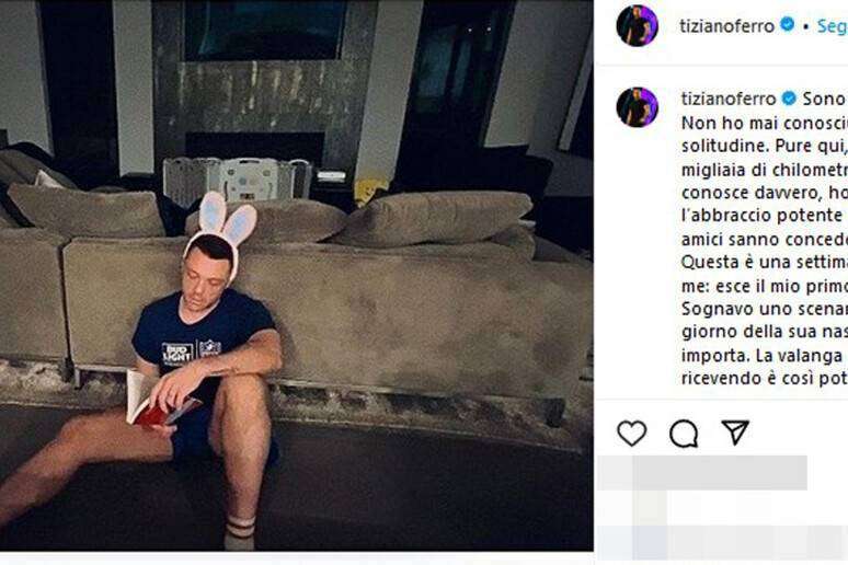 “Non ho mai conosciuto la vera solitudine. Pure qui, a decine di migliaia di chilometri da chi mi conosce davvero, ho sentito l’abbraccio potente che solo i veri amici sanno concederti”, aggiunge nel post che ha pubblicato sui suoi profili, con una foto che lo ritrae seduto in terra a leggere con, in testa, orecchiette da coniglio, probabile dono dei suoi due figli, per i quali in questo momento non può lasciare gli Stati Uniti e fare promozione in Italia per il libro come aveva spiegato già nei giorni scorsi.
