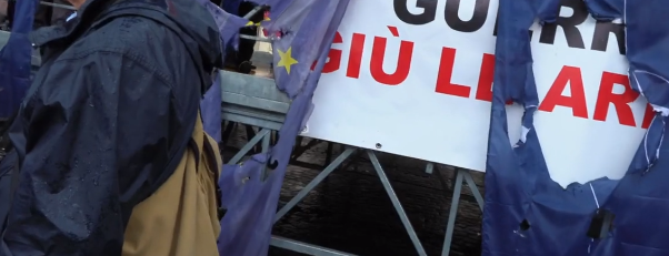 Diverse azioni simboliche di protesta si sono svolte e i movimenti antagonisti hanno bruciato le bandiere di USA, UE e NATO.