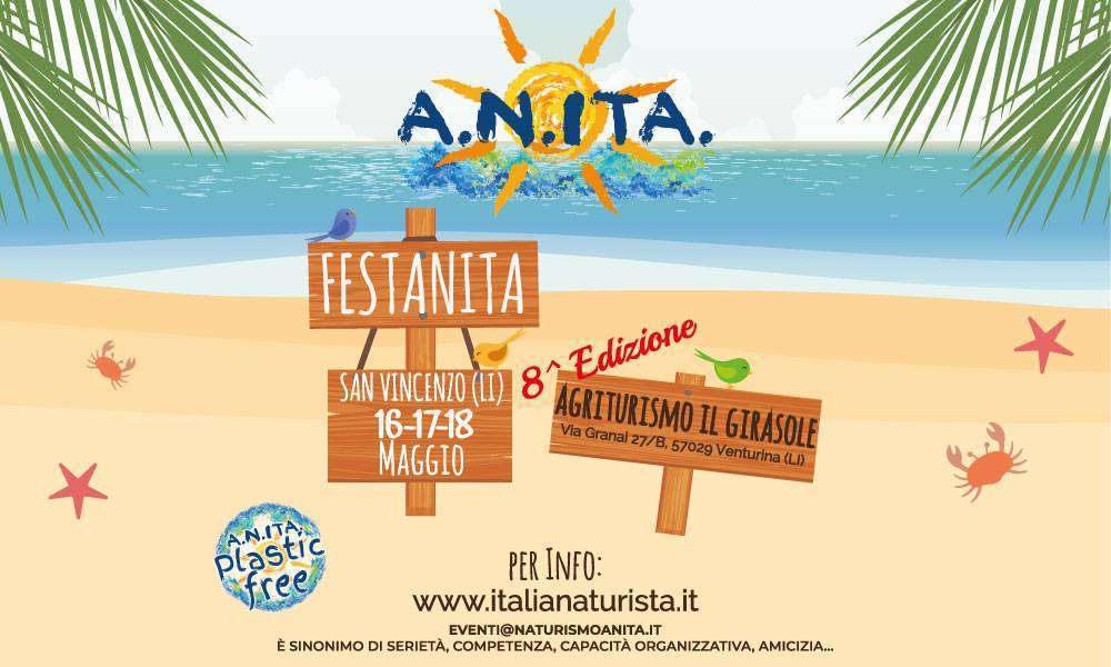 FestAnita. è un momento d’incontro tra naturisti, è un’occasione di impegno per la salvaguardia ambientale, con la pulizia primaverile della spiaggia Naturista del Nido dell’Aquila, è allegria, cultura, cura del corpo e della mente.