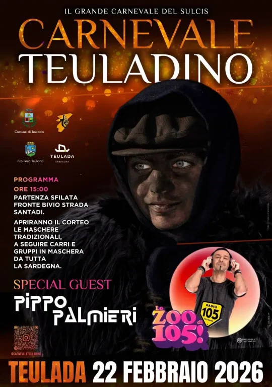 Nel profondo Sulcis, tra spiagge mozzafiato, distese di boschi e resti di archeologia mineraria, da anni si celebra uno dei più importanti carnevali della Sardegna: sabato 22 febbraio 2026 le strade di Teulada si riempiono di colori, musica e divertimento con la grande sfilata del Carnevale Teuladino.