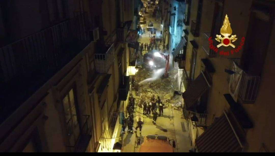 Continua il lavoro delle squadre dei Vigili del Fuoco nella zona del cedimento di Corso Umberto, a Torre del Greco.