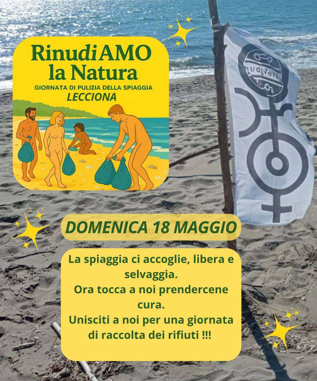Nudiverso, l’associazione no profit per la promozione della nudità sociale e del suo riconoscimento come diritto civile ha promosso una giornata di pulizia della spiaggia della Lecciona a Torre del Lago (Viareggio, Lucca).