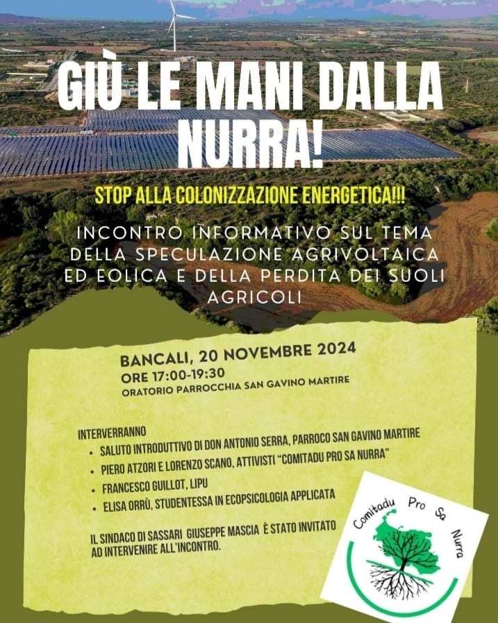La Nurra rappresenta «un esempio emblematico di ciò che sta capitando all’intera isola: terre fertili e paesaggi unici rischiano di essere distrutti per costruire impianti giganteschi che serviranno solo a esportare energia fuori dall’isola. Non possiamo accettare che le nostre risorse siano sfruttate senza il nostro consenso, senza alcun ritorno ma solo a danno del nostro popolo».