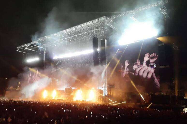 È la notte di Utopia, trema anche il prato, e chissà non arrivino Drake, Beyonce’, The Weeknd su questo palco distopico a cantare con Travis il gladiatore in bianco tra fiamme e fumogeni.