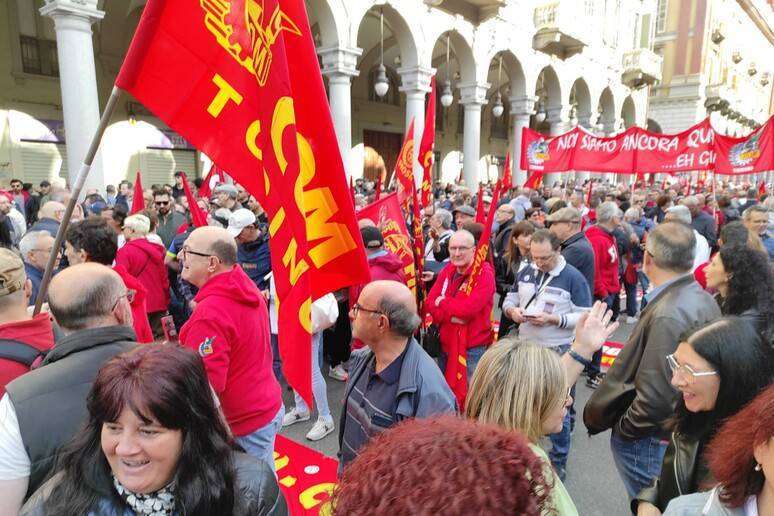 In piazza Statuto, da dove si muoverà il corteo dietro allo striscione ‘Il rilancio di Torino parte da Mirafiori”, sono arrivate delegazioni da tutta Italia e da altri stabilimenti Stellantis.