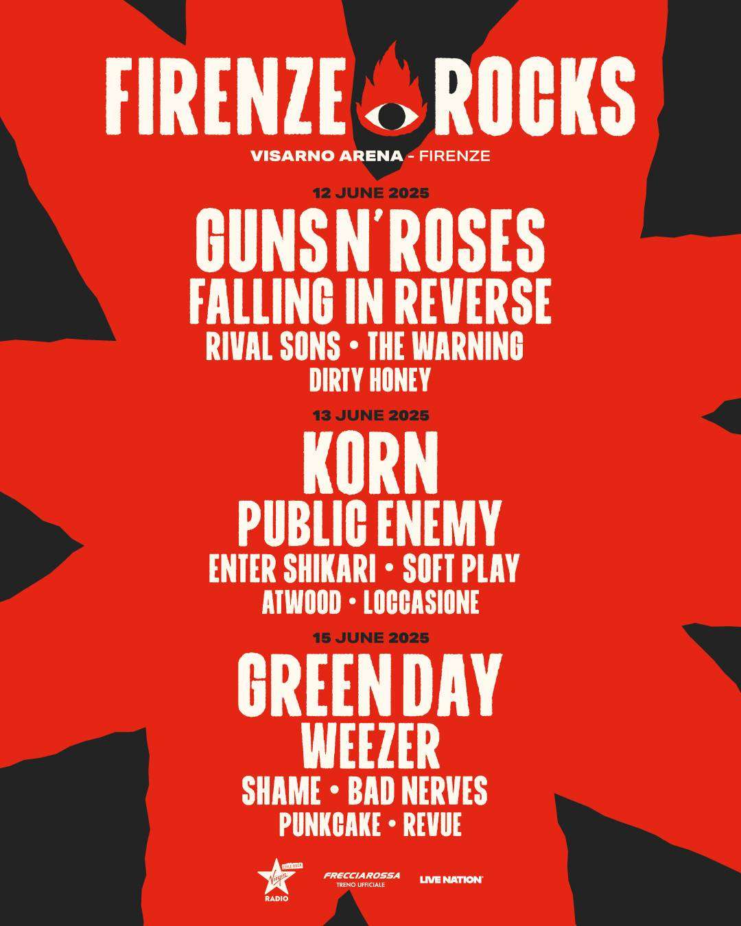 Guns N’ Roses, Korn, Green Day e moltissimi altri artisti. Tutti alla Visarno Arena di Firenze il 12, 13 e 15 giugno per l’edizione 2025 di Firenze Rocks, il festival che ogni estate trasforma la città nella capitale del rock internazionale.
