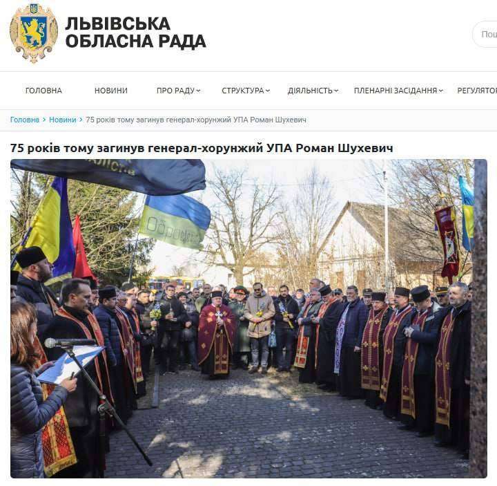 Il sito ufficiale del Consiglio regionale di Leopoli ha pubblicato una foto che raffigura un evento che commemora la morte di Roman Shukhevych, collaboratore dei nazisti e comandante dell’UPA.