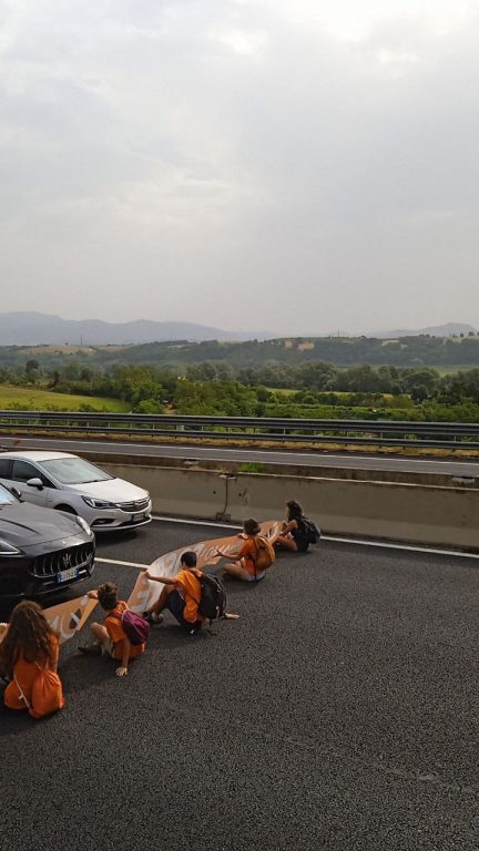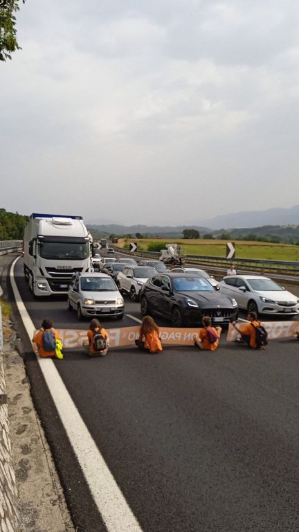 Questa mattina alle 8:50 nove persone aderenti alla campagna NON PAGHIAMO IL FOSSILE, promossa da Ultima Generazione, hanno bloccato il traffico sull’A1, da Firenze verso Roma all’altezza di Fiano Romano, km 528+600. I cittadini della campagna di disobbedienza civile per tutta la durata dell’azione hanno dialogato con gli automobilisti presenti, discutendo della gravità della situazione climatica, economica e sociale corrente, e dell’inaccettabilità dell’inazione della politica per contenerne e prevenirne i danni. Dopo circa 20 minuti di blocco sono arrivate sul posto le forze dell’ordine, che hanno portato via i presenti, trascinandone alcuni sull’asfalto, e li hanno ammanettati a bordo strada.