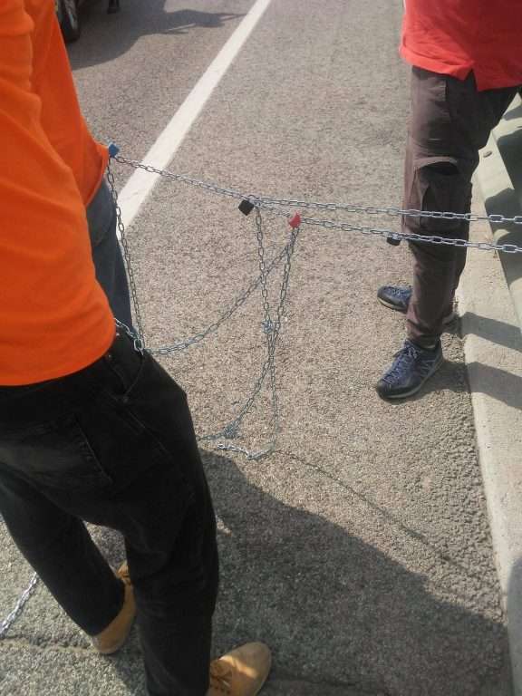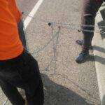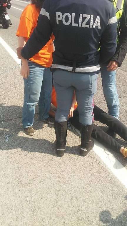 Questo pomeriggio alle 16.10 circa, quattro cittadine e cittadini aderenti alla campagna NON PAGHIAMO IL FOSSILE, promossa da Ultima Generazione, hanno preso parte ad un’azione non violenta dimostrativa durante il Giro d’Italia per pochi minuti sulla Strada Regionale 89 “Treviso-Mare”, all’altezza di Roncade (TV). Gli attivisti hanno esposto striscioni con su scritto “NON PAGHIAMO IL FOSSILE” per comunicare con i milioni di spettatori di questa storica manifestazione sportiva. Dopo essersi incatenati al guard-rail sul ciglio della strada, sono stati velocemente fermati dalle forze dell’ordine.