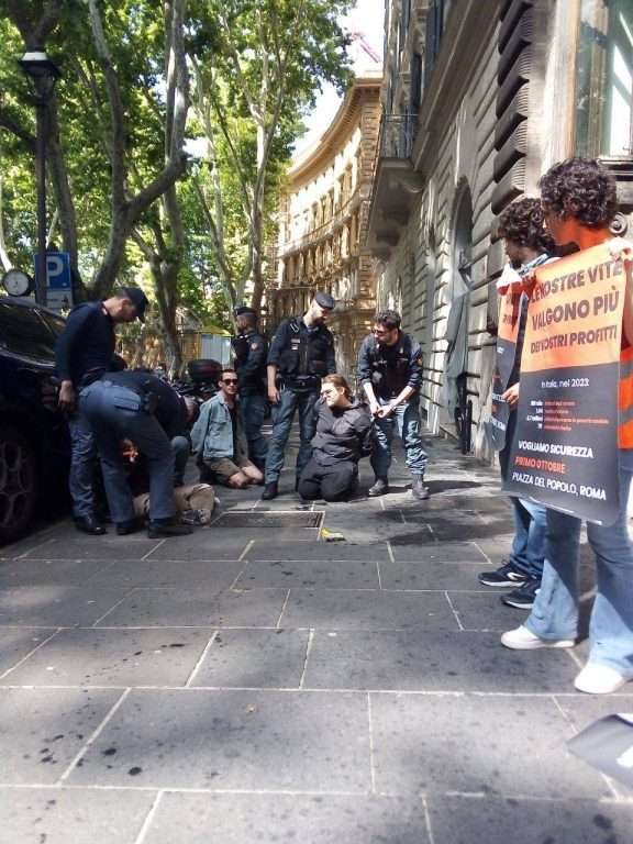 Questa mattina, aderenti alla campagna Fondo Riparazione di Ultima Generazione hanno condotto un’azione di disobbedienza civile nonviolenta presso il Ministero del Lavoro e delle Politiche Sociali in via Veneto, lasciando un promemoria per la Ministra del Lavoro Maria Elvira Calderone. I cittadini hanno spruzzato di nero (con del carbone vegetale) la facciata del ministero ed esposto delle locandine che riportano i dati delle morti e degli infortuni sul lavoro del 2023: 560 mila infortuni sul lavoro e 1041 morti. Questo significa che oggi stesso due persone moriranno sul posto di lavoro e il numero è destinato ad aumentare con l’arrivo dello stress di calore questa estate. Questi numeri nascondono persone reali e ci rifiutiamo di rimanere in silenzio davanti a una tale ingiustizia.