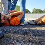 Questa mattina alle 8:15 sulla Strada Statale 16 “Adriatica” al km 818, tra Torre a Mare e Mola di Bari, otto persone si sono sedute sull’asfalto e hanno bloccato il traffico in entrambe le direzioni. L’intervento delle forze dell’ordine è stato immediato e prima delle 08:30 tutte le persone sono state spostate ai lati della strada e portate via. Sono state trattenute anche altre due persone che si trovavano sul posto per documentare l’azione con foto e video. Imponente l’apparato repressivo che ha fatto decollare un elicottero del reparto volo della Polizia di Stato di Bari dalle 08:36 alle 09:10, utilizzando ingenti risorse pubbliche per una protesta che era ormai terminata.
