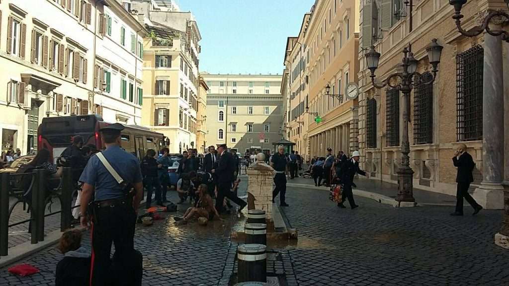 Ultima Generazione Roma, acqua e fango davanti al Senato: violento intervento delle forze dell’ordine